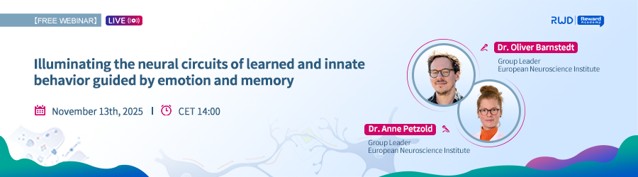 Webinar: Illuminating the neural circuits of learned and innate behavior guided by emotion and memory Presenters: Dr. Oliver Barnstedt and Dr. Anne Petzold (European Neuroscience Institute, Germany) Date: Thursday, November 13, 2025 Time: 14:00 CET Session 1: Fear Not – How Hypothalamic Circuits Overcome Anxiety Speaker: Dr. Anne Petzold Group Leader, European Neuroscience Institute Content Outline: Dissect hypothalamic–prefrontal circuits using optogenetics and calcium imaging in freely moving mice to illuminate how leptin-sensitive neurons in the lateral hypothalamus shape adaptive feeding under anxiety. Uncover how prefrontal inputs inhibit leptin-sensitive neurons and drive maladaptive states in an anorexic model, revealing these neurons as key regulators of anxiety and eating disorders. Illustrate the use of state-of-the-art technical approaches to illuminate circuit function: somatic stimulation of defined neuronal populations or axonal stimulation in freely moving mice, optogenetic assays, cell calcium imaging, and axonal fiber photometry. About Dr. Anne Petzold: Neuroscientist based at
